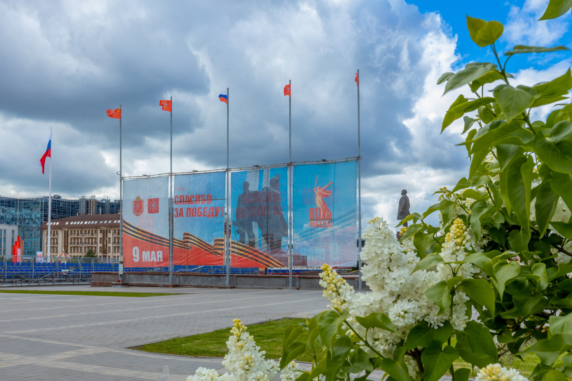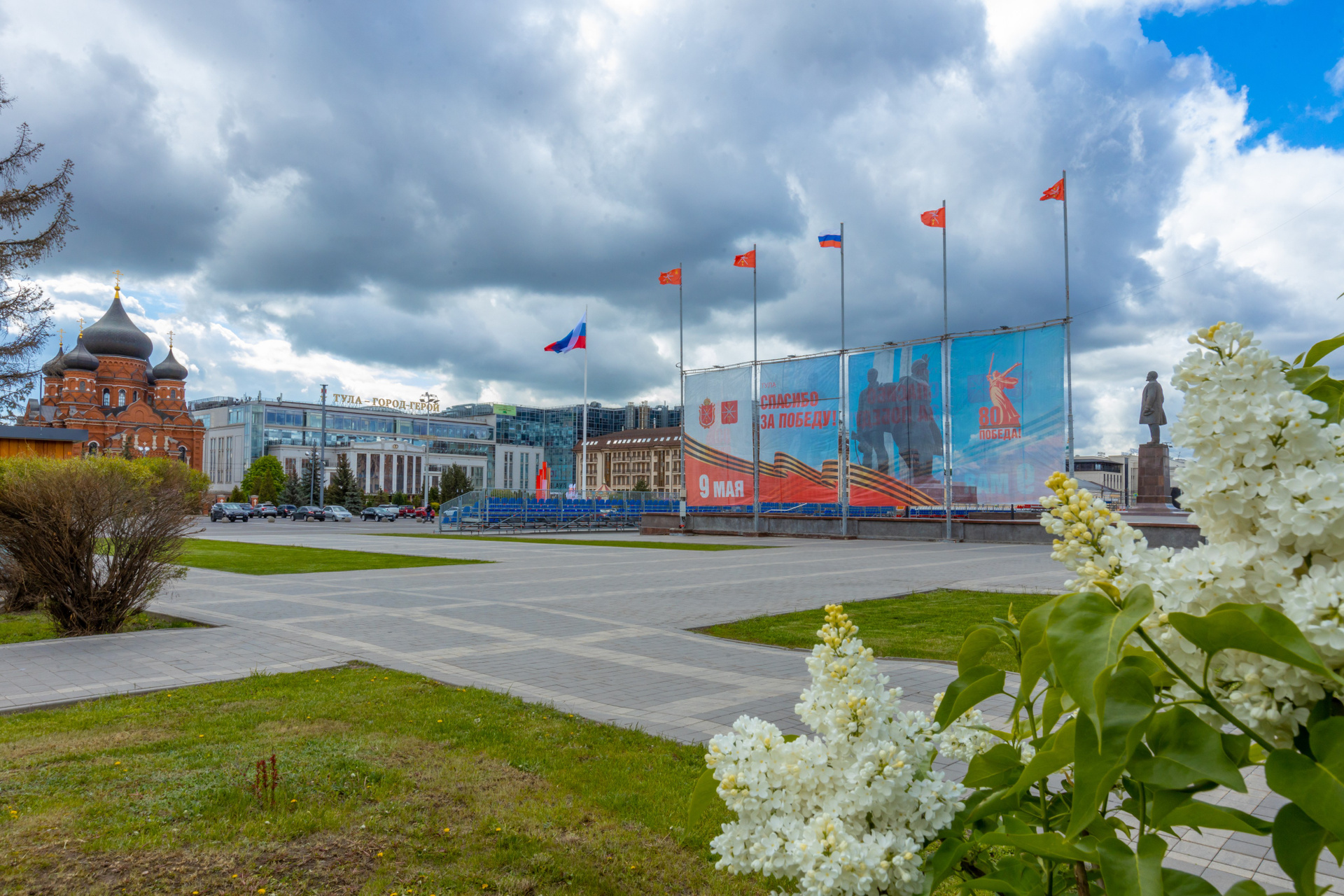 Грозовое небо над площадью победы в Туле.